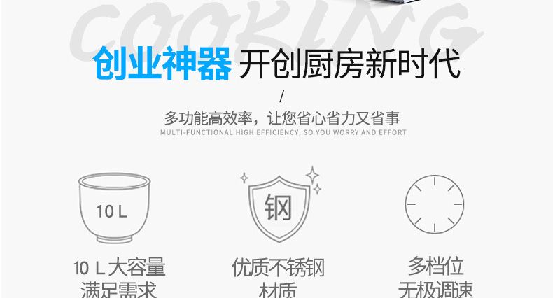 該機外形美觀、操作方便、工作效率高。既適合于賓館、酒樓、餐館、食品加工廠及單位食堂制作食品,也可供制藥、化工原料等廠礦單位作調劑原料之用。