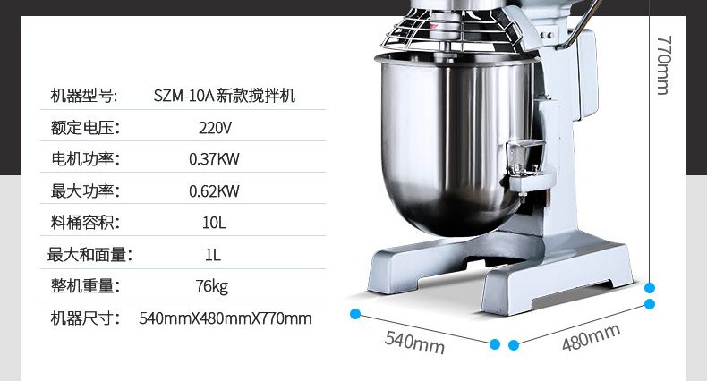 A系列食品攪拌機,可用于攪拌奶油、蛋糕液、餡料及和制面團等操作。打蛋攪拌機等作攪拌食料、揉和面團之用,是生產優質糕點的理想設備,適用于酒店、飯店、學校部門、面包屋以及食品廠家。