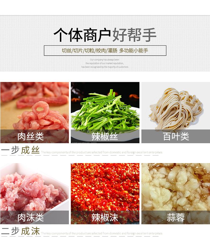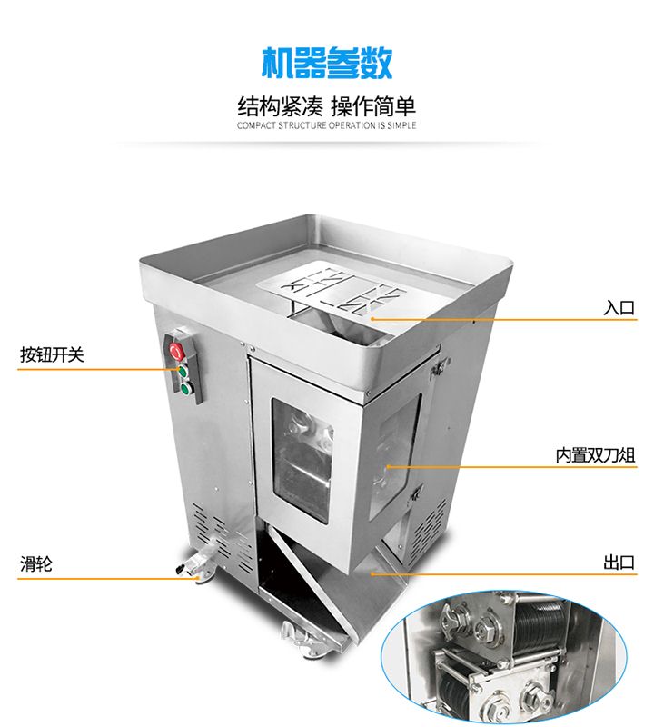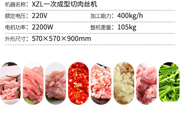 旭眾XZL一次成型切絲機是我廠精心研制出的新產品,該機時尚、簡潔、清洗便捷、操作安全,配有風冷馬達,適合連續作業;高質量全不銹鋼機身。適應于酒樓、超市、工廠、學校、賓館、食堂等各種肉類加工企業和個體用戶使用。?