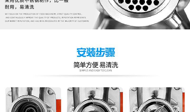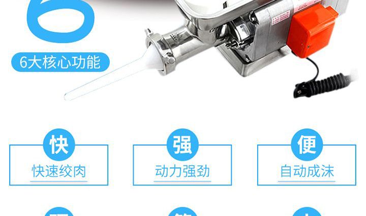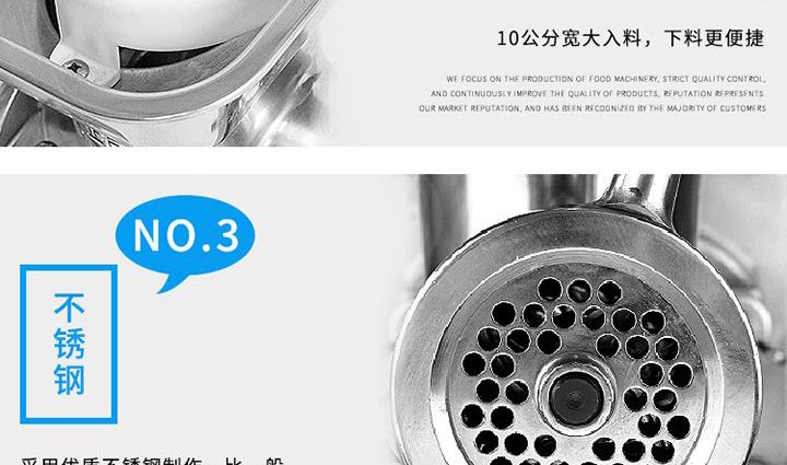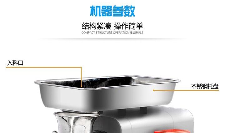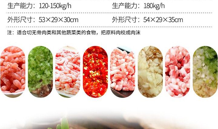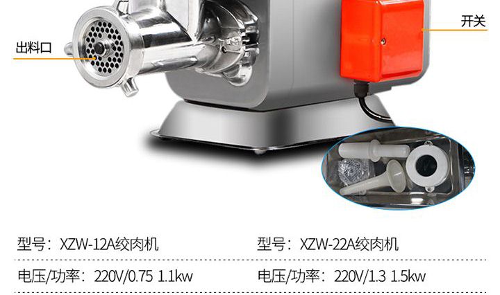名稱(chēng)XZW-12A/22A絞肉機(jī) 電源220V 功率0.75/1.1kw;1.3/1.5kw 產(chǎn)量120-150kg/h;180kg/h 尺寸53×29×30cm/54×29×35cm 重量23.5kg/25kg 規(guī)格 其他