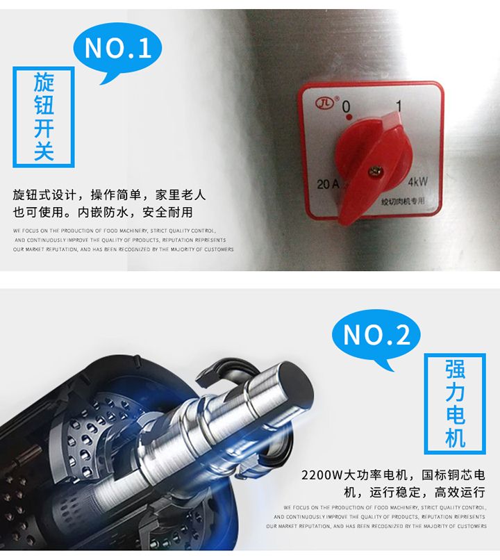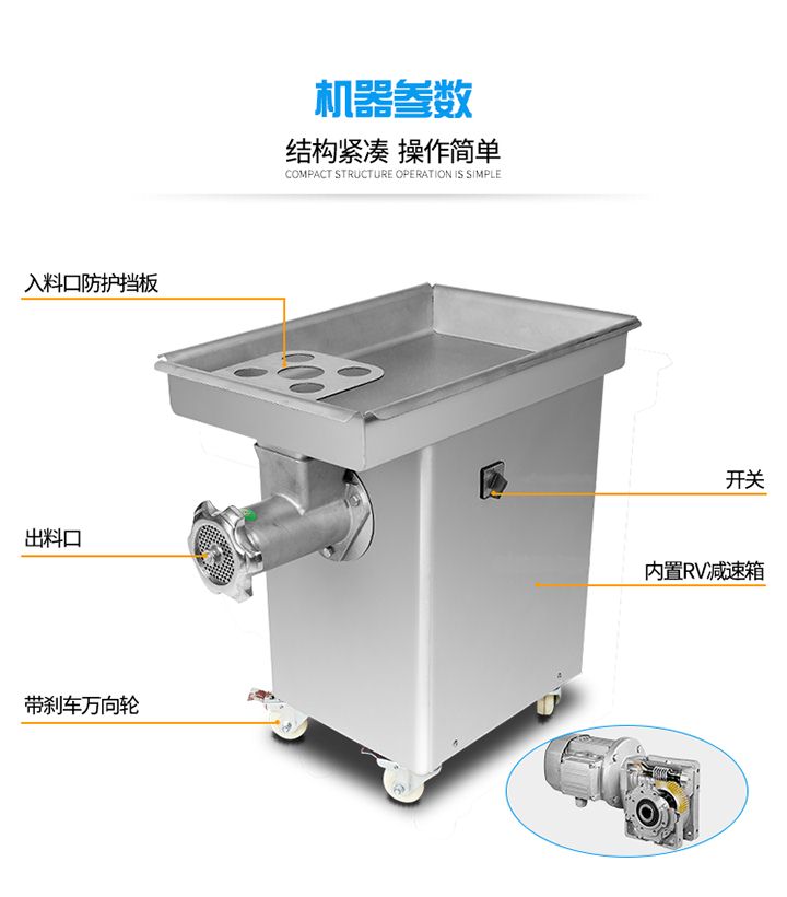 XZL-32A單絞機吸取同行之優(yōu)點,改進新型絞肉切肉機械,它能切豬肉、羊肉、牛肉、魚及其它各種肉類、所切肉片厚度適中切片效率高,是餐廳、賓館、酒樓、單位食堂等絞肉切肉的理想機械,該機外形獨特,操作方便,維修簡單,工作效率高,在同行業(yè)中處領先地位,與食物接觸部分均采用不銹鋼制造符合食品衛(wèi)生標準。