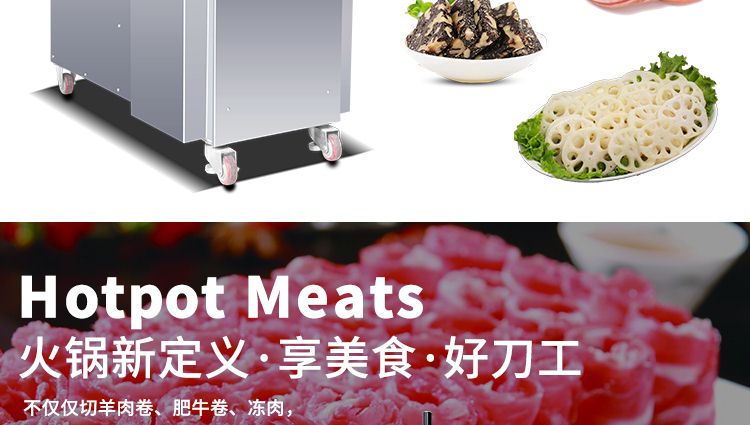 1.不用解凍,-18度的肉卷上機即可切片,肉片不碎且成型美觀