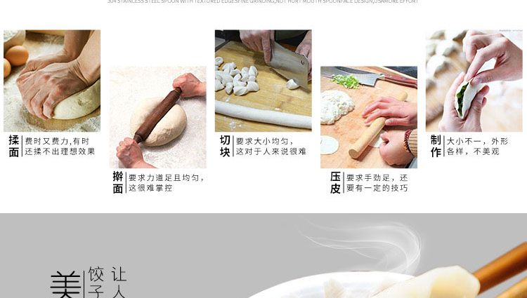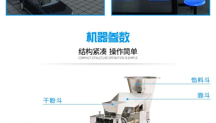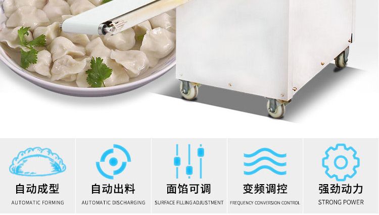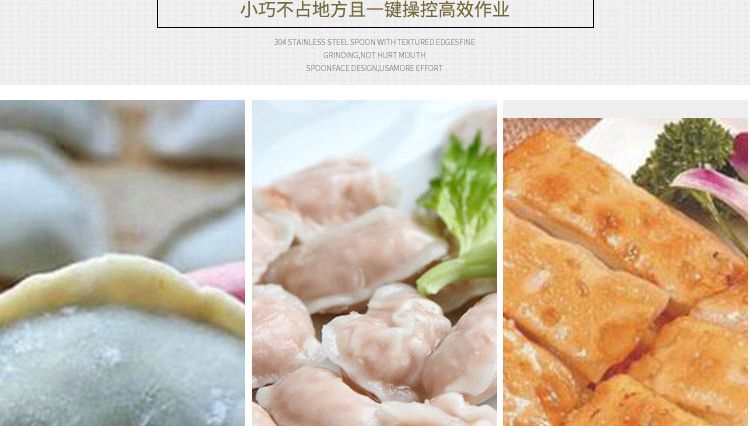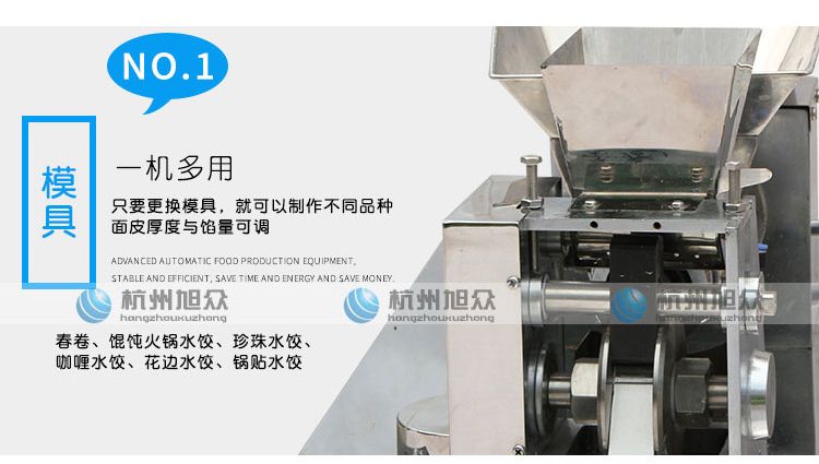 更換機(jī)頭可做春卷、餛飩、火鍋水餃、珍珠水餃、咖喱餃子、花邊餃子、鍋貼餃子
