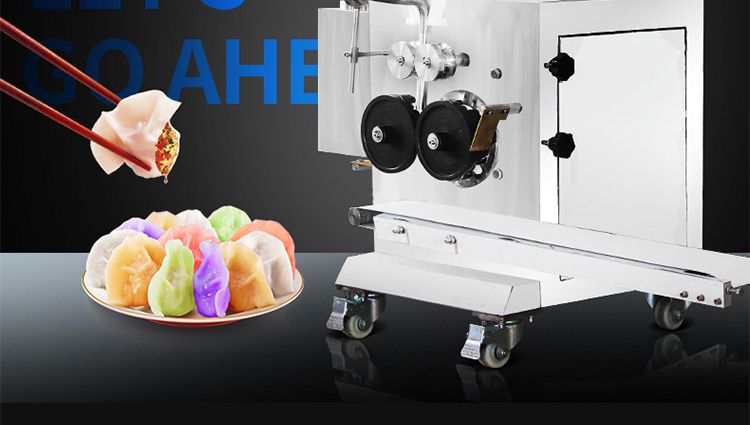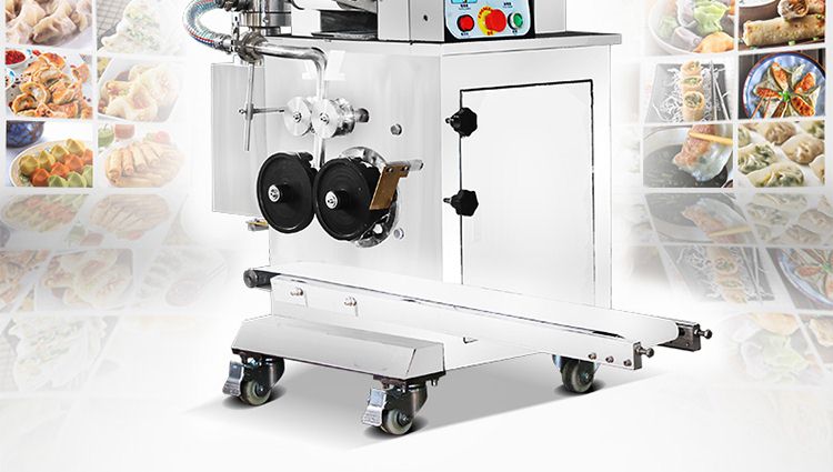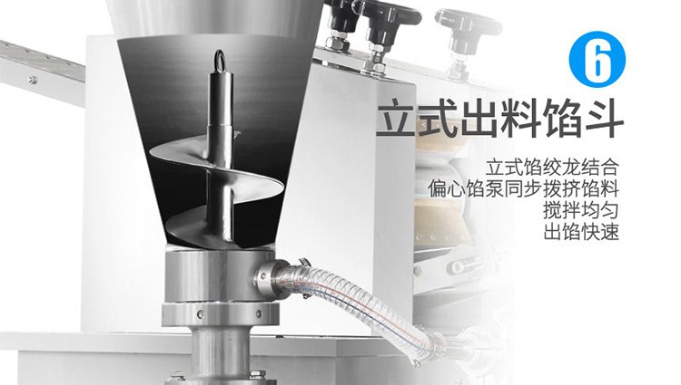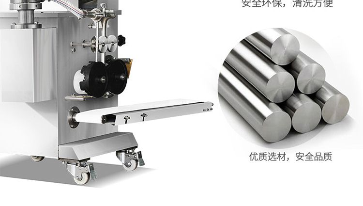 ?本機采用自動軋制面皮后包制餃子的新工藝技術,克服了舊式餃子機絞龍強力擠壓,使面團面粉發熱、糊化、面制變硬、面胚失去筋度,而造成的餃子口感發硬,面皮較厚的缺陷。