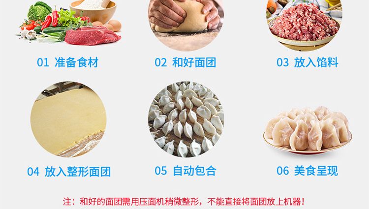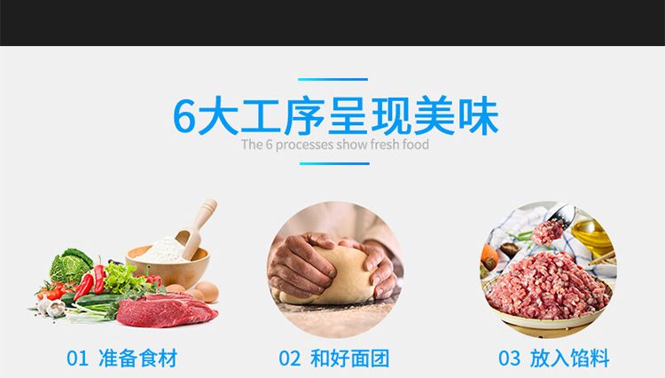 ?采用多道壓面輥壓面,壓面效果優異,壓出的面皮筋道,進一步提高所包出的餃子口感。
