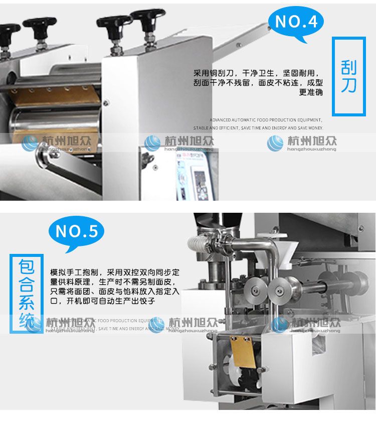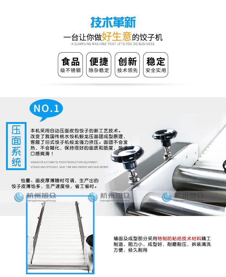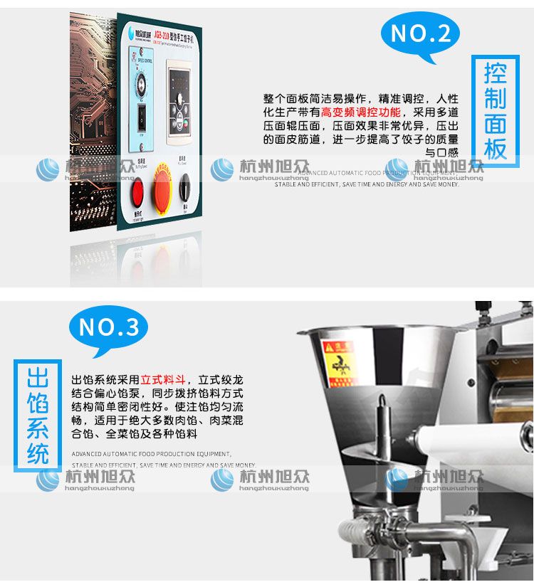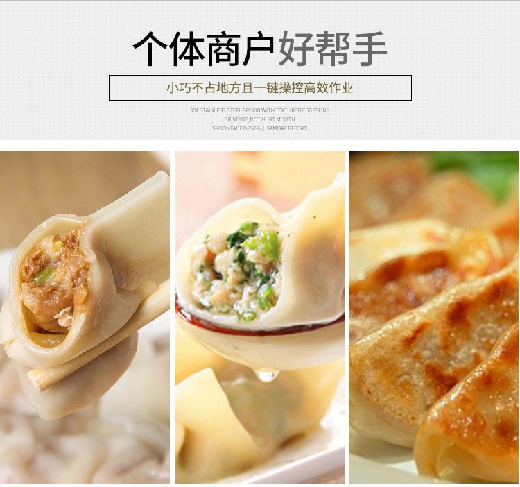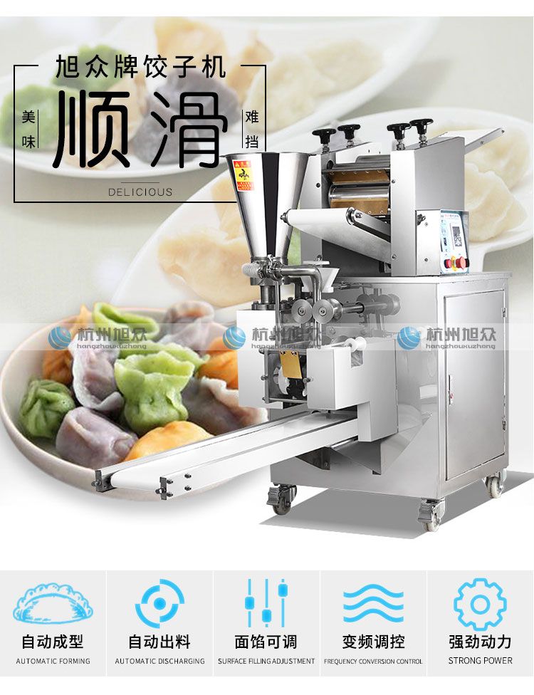 ?餡量、面皮厚薄隨時(shí)可調(diào),生產(chǎn)的餃子,皮薄餡滿,生產(chǎn)速度快,省工省時(shí);