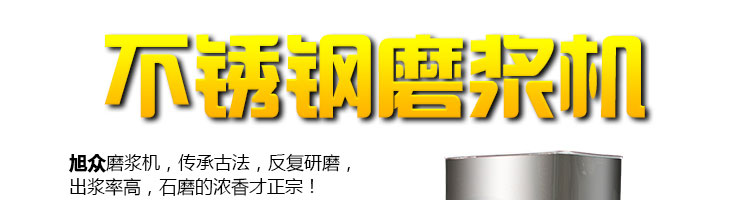 旭眾牌SZ-12/15/20不銹鋼磨漿機結構合理,造型美觀,操作簡便。具有體積小、重量輕、噪音低、省力,性能穩定、質量可靠、容易清洗、移動方便等優點,適用于豆制品廠、飲食服務業、食堂、飯店及個體商戶使用。