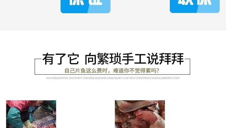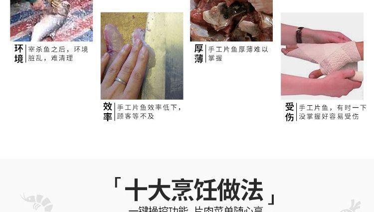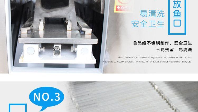 ?本機采用優質不銹鋼托魚板,衛生干凈,刀片采用進口材料;
