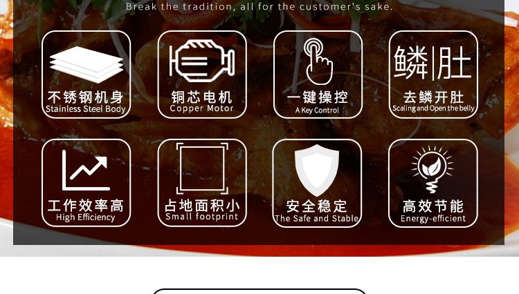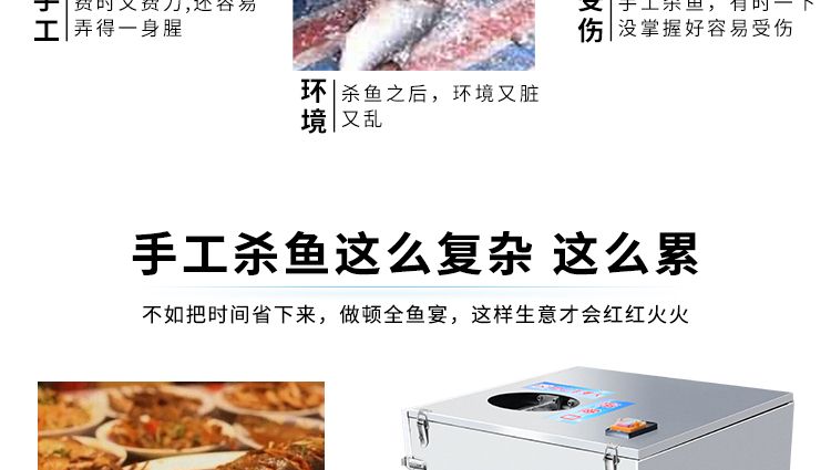 名稱XZ-018開肚去鱗殺魚機 電源220 功率1.5kw 產量 尺寸545×525×850mm 重量85kg 規格0.5Kg—4Kg 其他