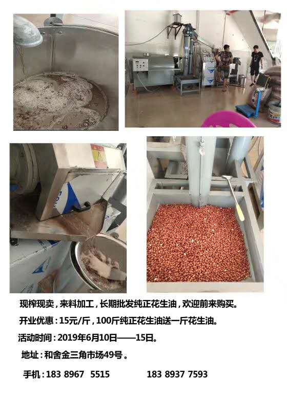 現榨現賣,來料加工,長期批發純正花生油——購買榨油機加工榨油