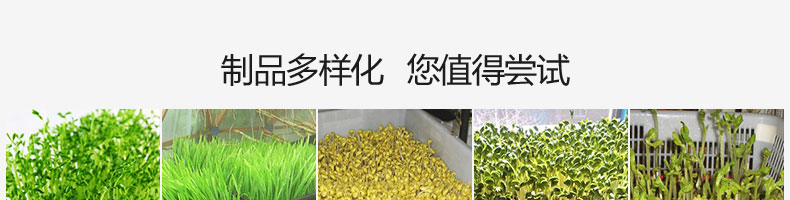 名稱芽苗機系列 電源220V 功率0.75kw 產(chǎn)量 尺寸1520*800*1600mm 重量130kg 規(guī)格耗水量0.3day/t;日耗電1度;育苗箱6pcs 其他