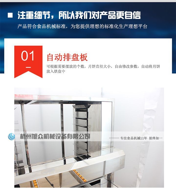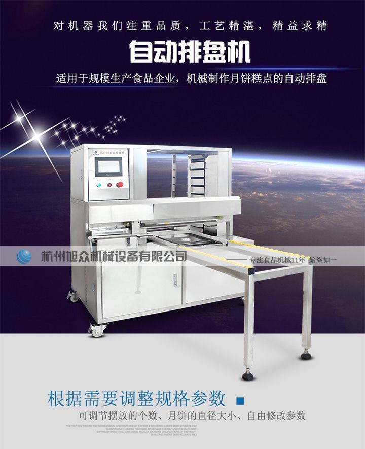 SZ-08型月餅自動排盤機,可同于制作各種月餅。適用于蛋糕房、休閑食品廠、食品加工產、面包房、月餅加工廠、超市、學校、食堂等各種工作場所??蓾M足不同客戶群體。免費提供工藝技術。