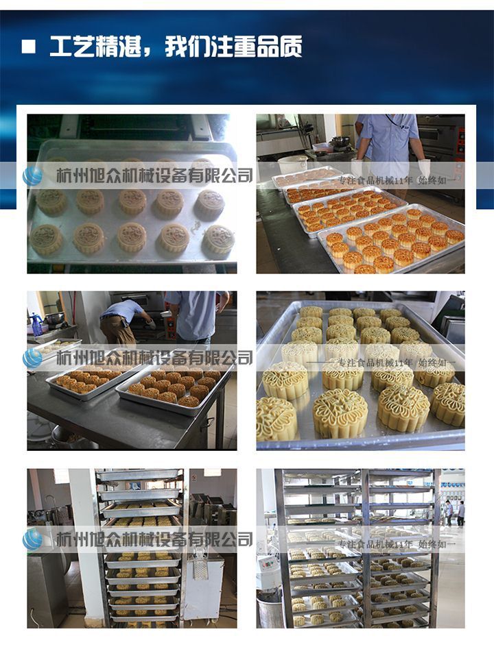 ◆ 月餅自動包餡機與月餅自動成型機.月餅自動排盤機組合成一條月餅自動生產線,自動化程度高.提高生產效率。